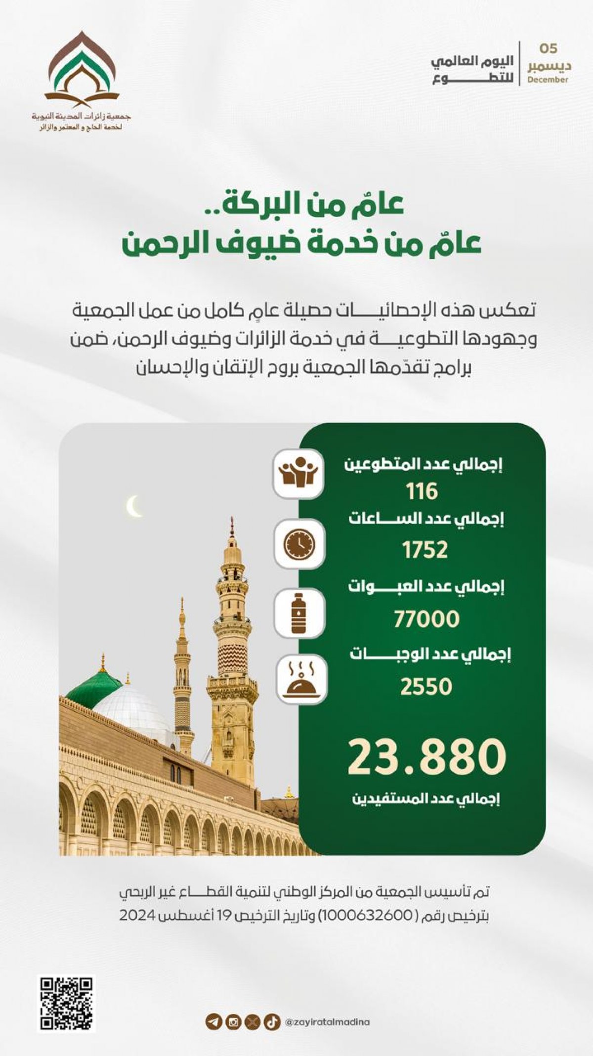 مشاركة جمعية زائرات المدينة النبوية في تنظيم الحشود وتوزيع الوجبات لضيوف الرحمن في المسجد النبوي