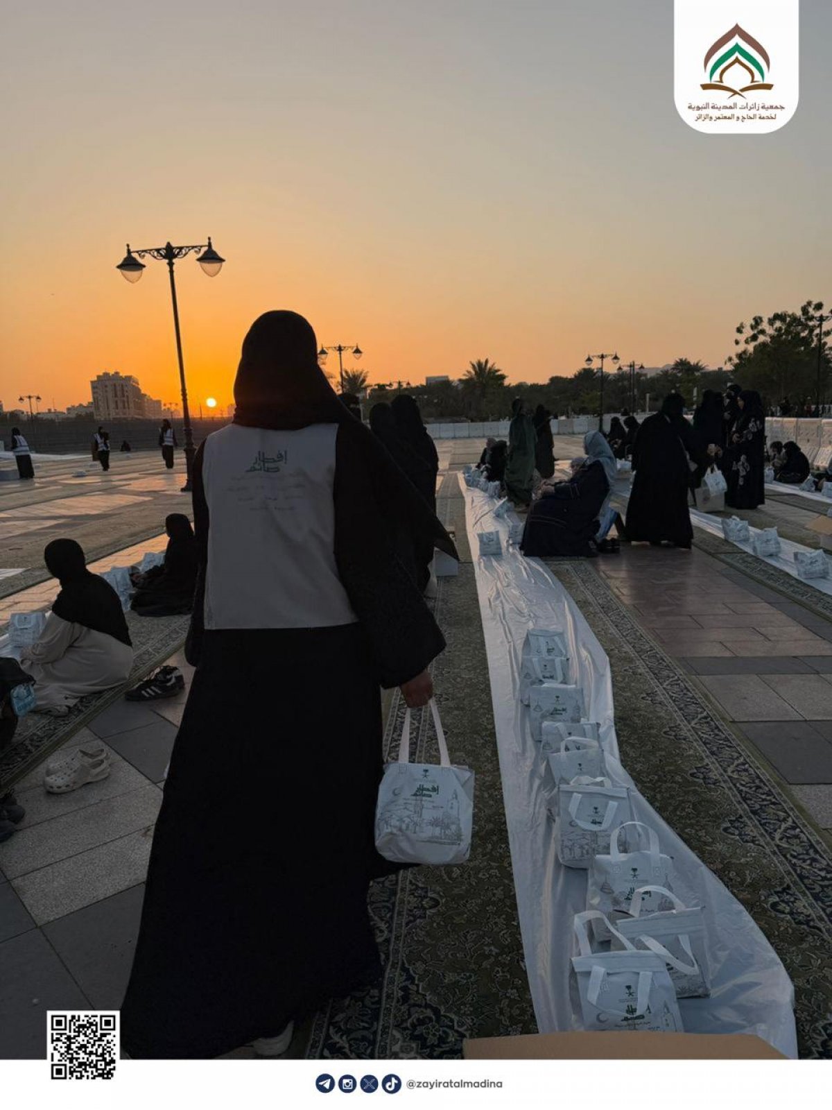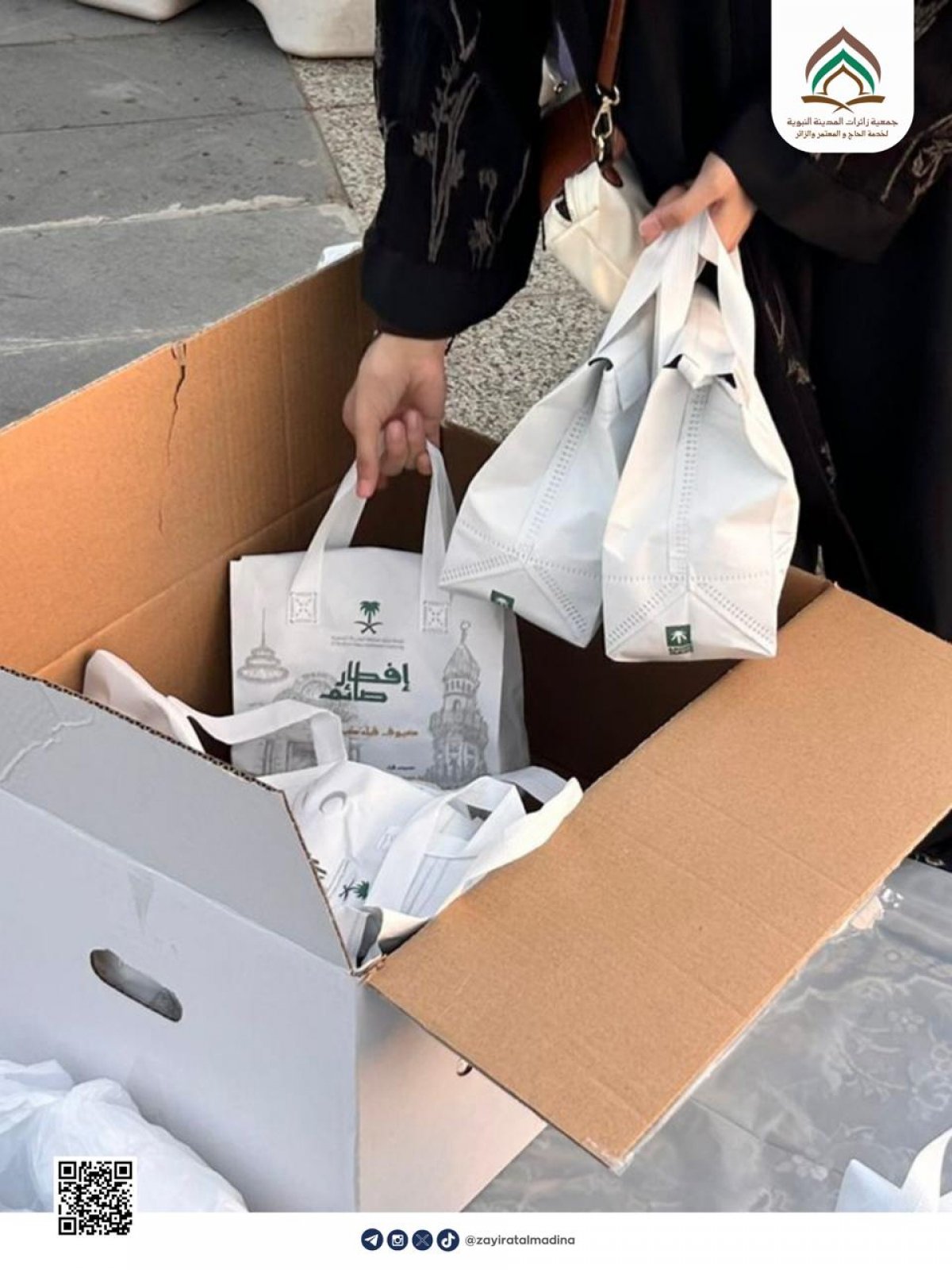 تواصل جمعية زائرات المدينة النبوية بالشراكة مع جمعية جوار لخدمة ضيوف الرحمن بتوزيع 360 وجبة إفطار صائم يوميًا
